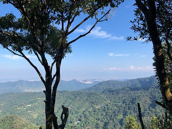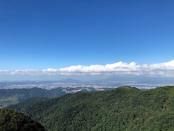 第二觀景點,此處展望更佳,遠處是觀音山及林口台地,鄰近城市邊緣的天上山稜線一覽無遺,隱約中還看到新北市的新月橋。