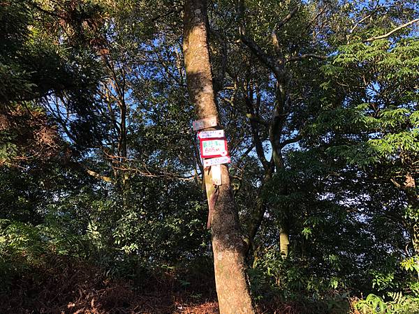 登山口叉,路旁樹上訂有藍天隊指標,依指標方向左轉往上。