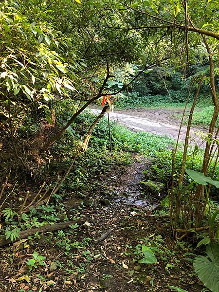 進入後就來到一片檳榔園,接著又會接上產道,產道上有幾處捷徑可以利用,捷徑的入口都綁有登山條,容易辨識。
