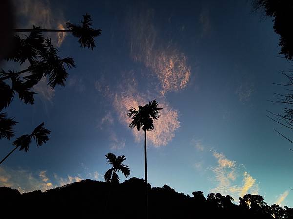 現在這個季節,太陽下山較早,天空已經出現晚霞了。