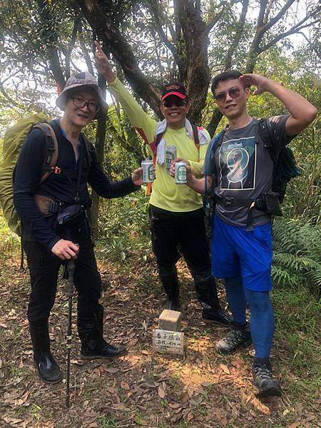 山頂暢飲啤酒 ,感謝義崇背負上山分享,登頂後原路返回。