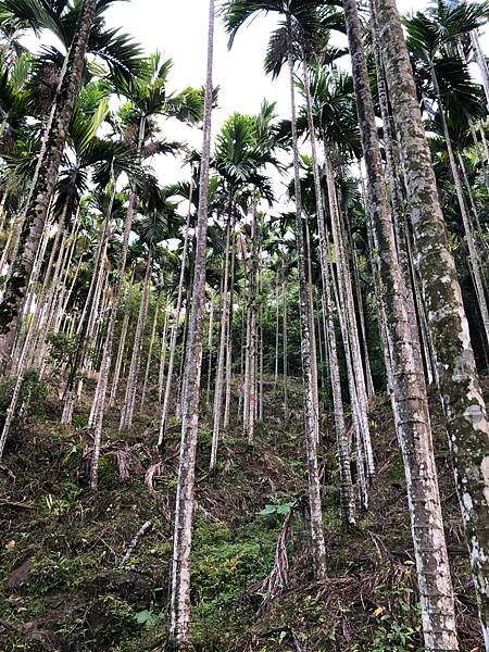進入後就來到一片檳榔園,接著又會接上產道,產道上有幾處捷徑可以利用,捷徑的入口都綁有登山條,容易辨識。