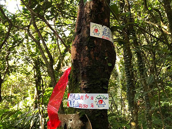 登山口叉,路旁樹上訂有藍天隊指標,依指標方向左轉往上。